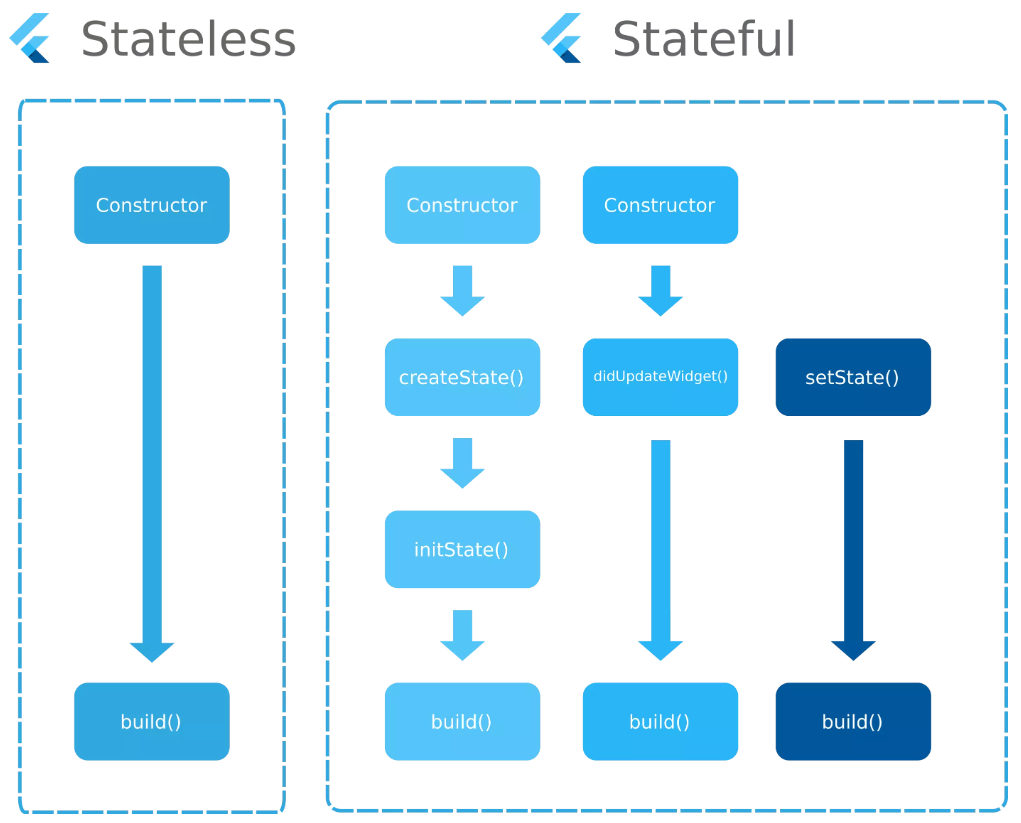 Flutter에서는 주로 StatelessWidget과 StatefulWidget의 생명주기에 대한 이해가 필요 합니다.