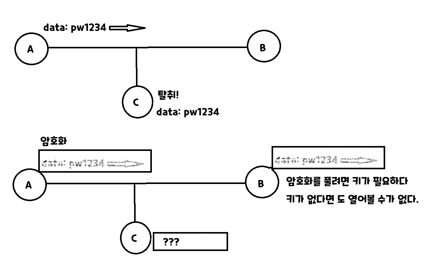 중간에 데이터가 탈취되더라도 원래의 내용을 알아볼 수 없게 합니다.