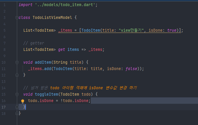 // TodoItem 비지니스 로직 생성 가능