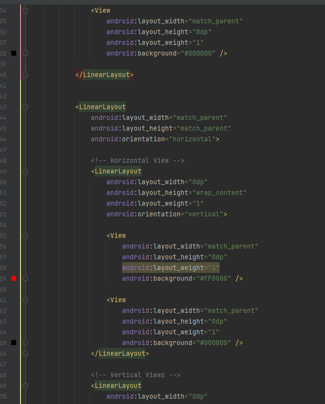1) orientation : 자식뷰들의 배치방향을 수평 또는 수직 방향으로 설정합니다. (ex, orientation="vertical")