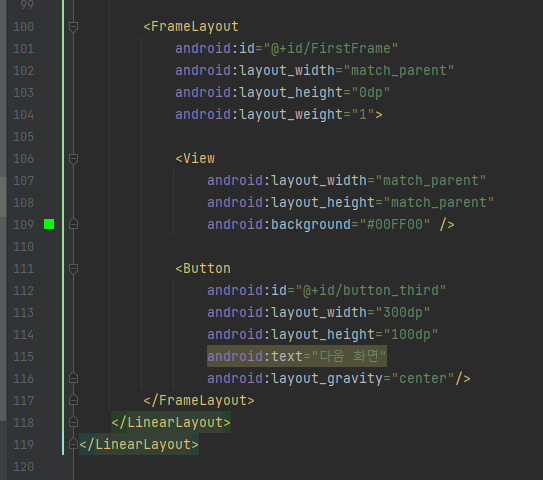 2) gravity : 해당 뷰안에 담겨 있는 컨텐츠의 배치 방향을 지정합니다. (ex, gravity="center|right")