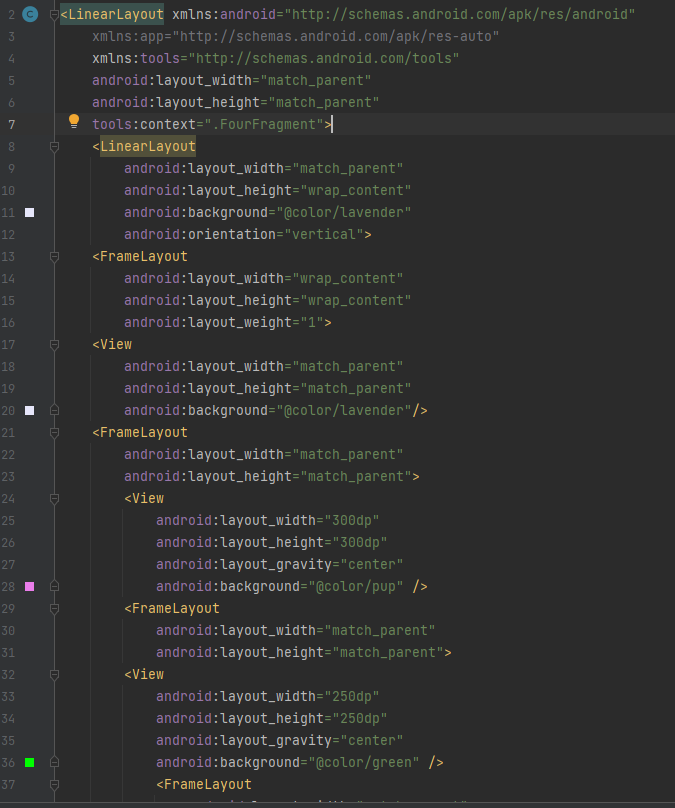 - FrameLayout에 배치되는 view 는 모두 좌측 상단에 배치된다.