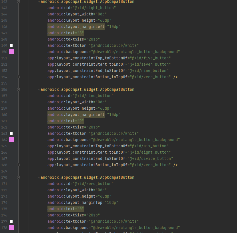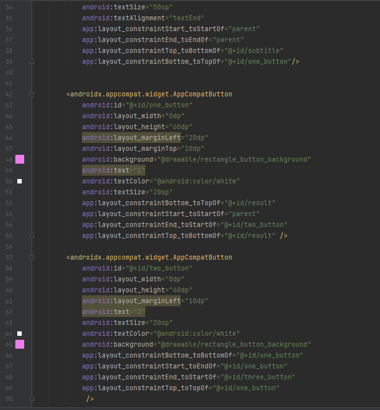 - layout_constraintRight_toLeftOf : 해당 뷰의 오른쪽을 지정된 요소의 왼쪽과 맞춥니다.
