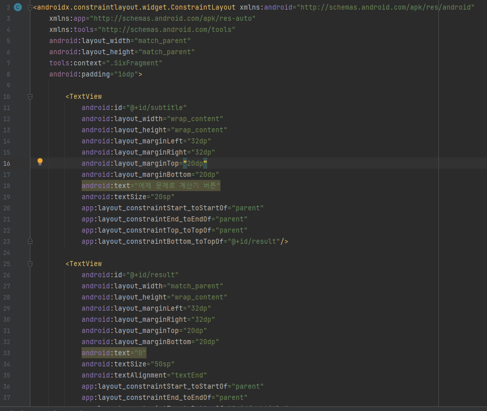 - layout_constraintStart_toStartOf : 해당 뷰의 시작 위치를 지정된 요소의 시작위치와 맞춥니다.