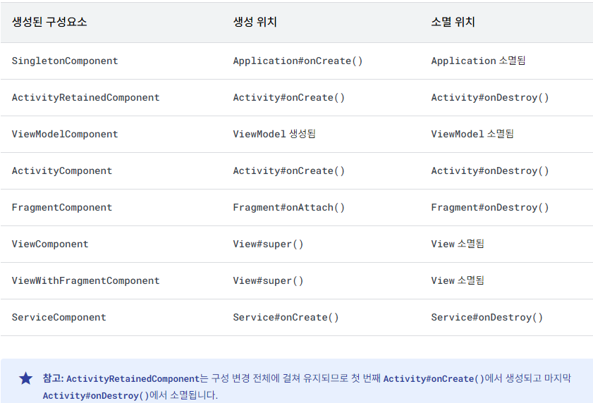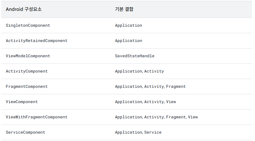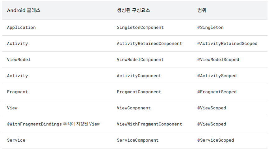 https://developer.android.com/training/dependency-injection/hilt-android?hl=ko#component-hierarchy