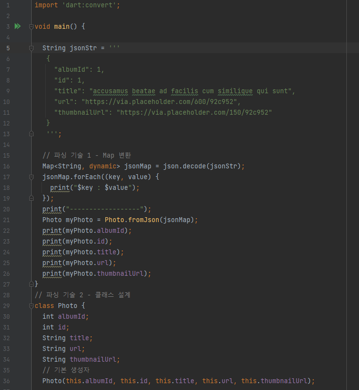 JSON 형식에 문자열 데이터를 dart 코드로 변환 처리