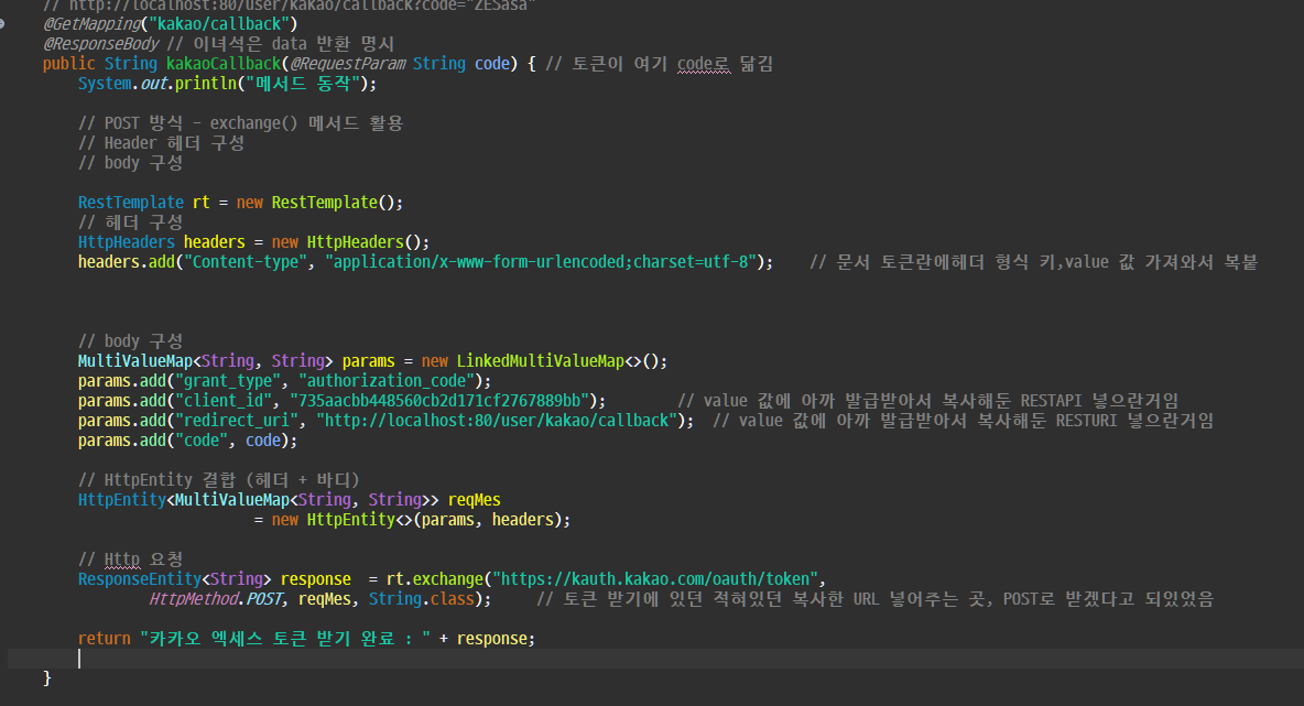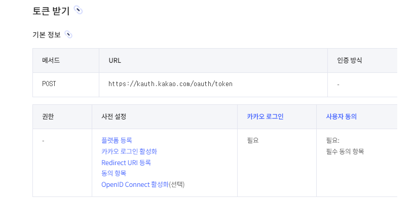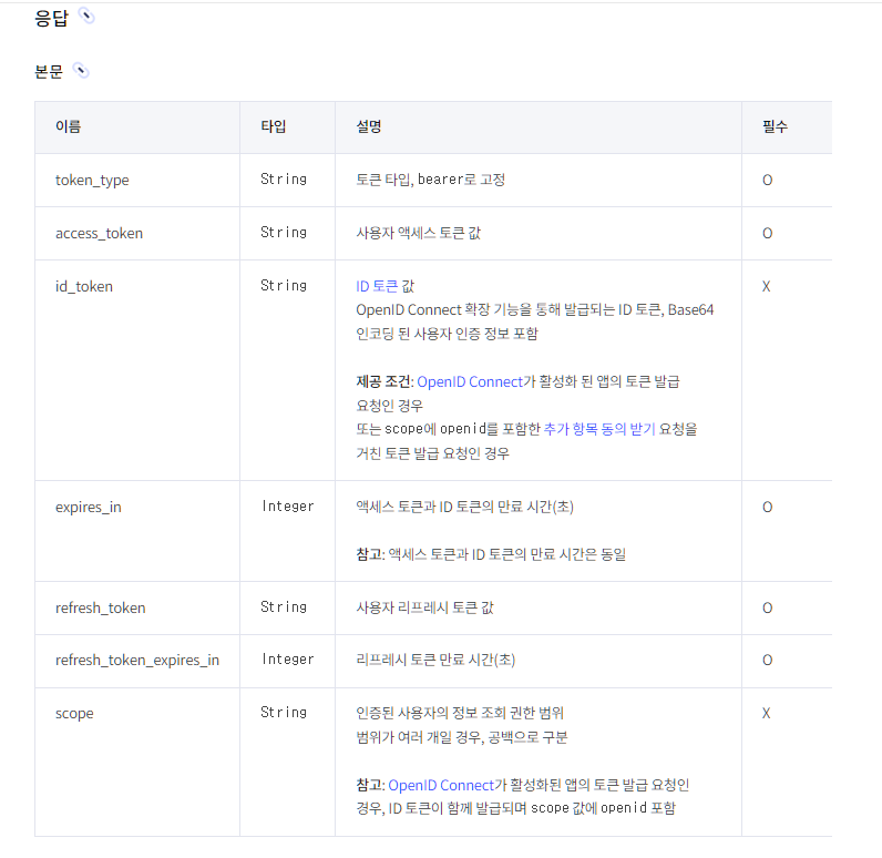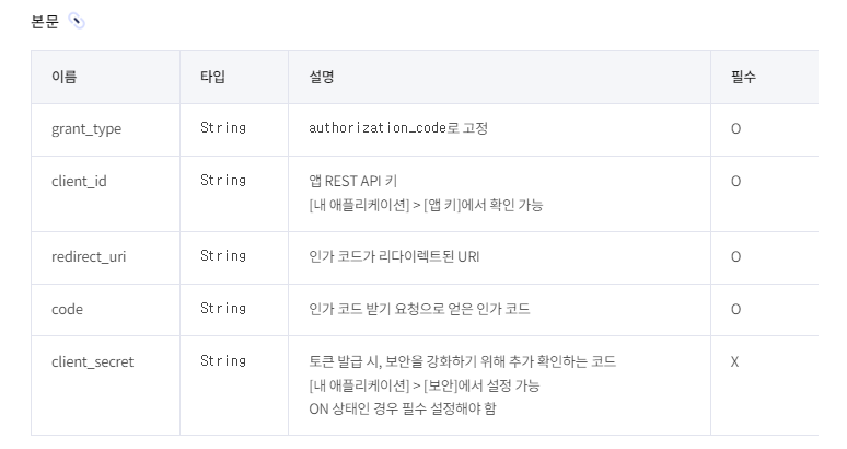 - POST 방식으로 https://kauth.kakao.com/oauth/token 요청