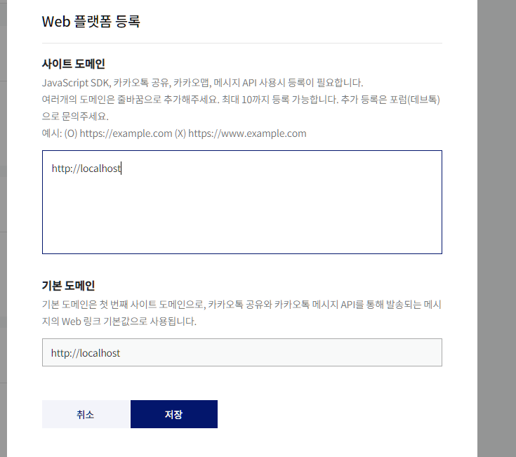 - Web 플랫 설정 - 기본 도메인 저장(http://localhost)