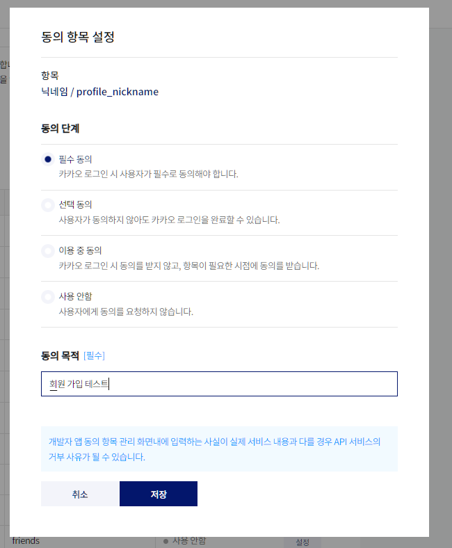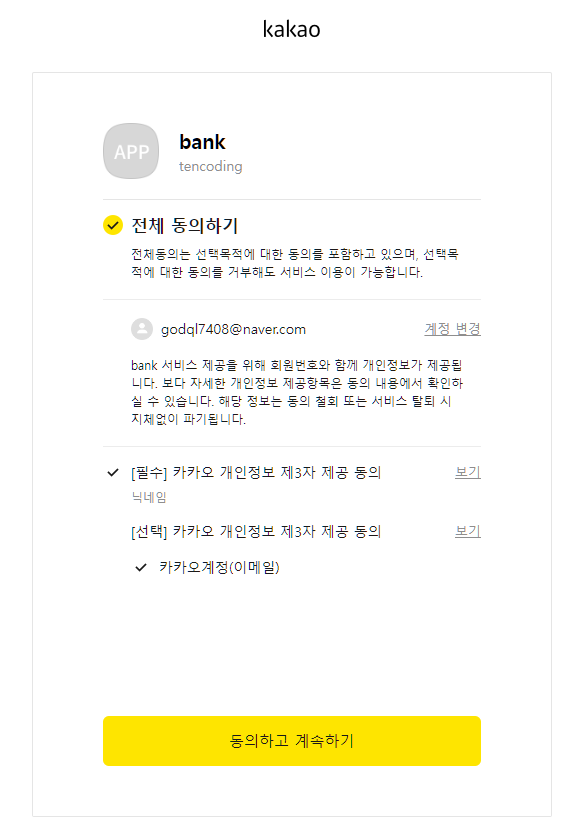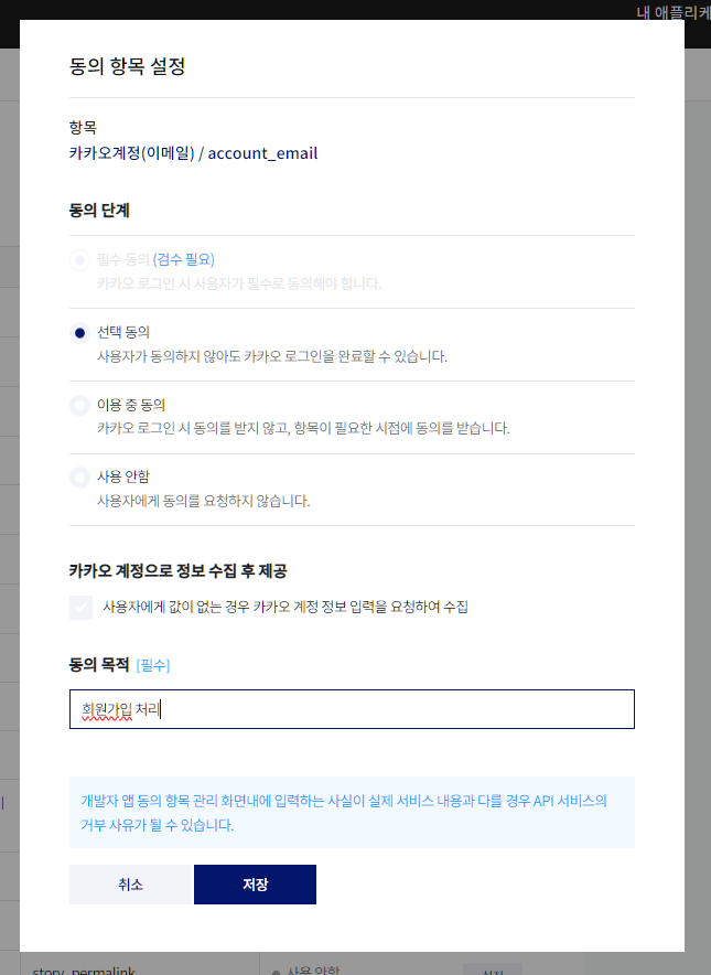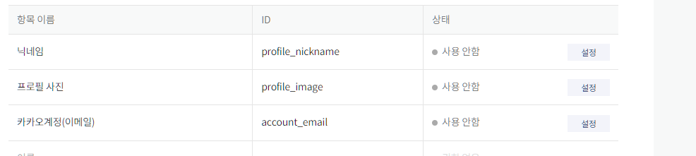 3. 동의 항목 설정하기(내 애플리케이션)