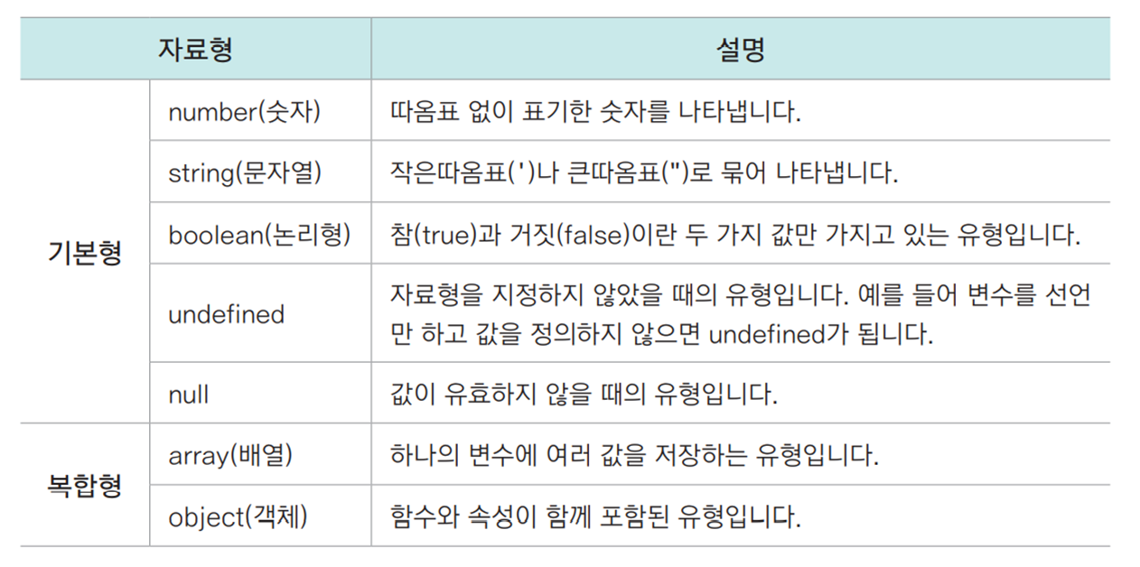 - 실수 - 소수점이 있는 숫자, (! 자바스크립트에서는 정밀한 실수 계산을 못 함)