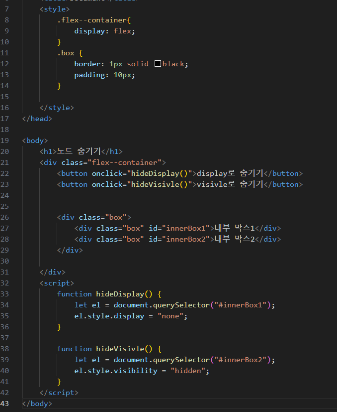 - 요소를 완전히 숨기며, 요소가 차지하던 공간도 제거됩니다.